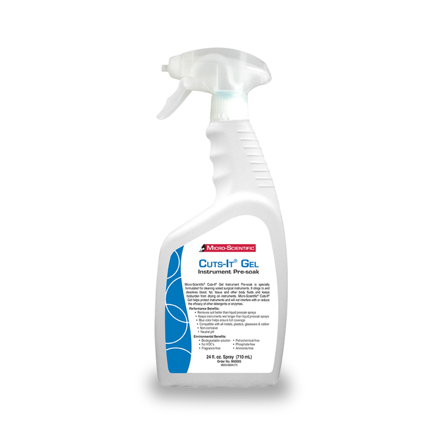 Cuts-It® Gel Instrument Pre-Soak is a highly effective, gel-based cleaning solution formulated to remove blood, fat, tissue, and body fluids from surgical instruments and equipment. The gel adheres to surfaces for uniform coverage, aided by a visible blue dye, while beginning to break down organic matter immediately upon contact. Featuring built-in rust inhibitors, rinsing agents for spot-free results, and a neutral pH, it’s safe for all metal instruments. This concentrated, cost-effective solution is also bacteriostatic when stored properly and is made with a biodegradable, phosphate-free formula—making it both powerful and environmentally responsible.